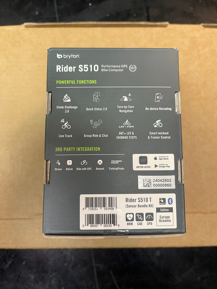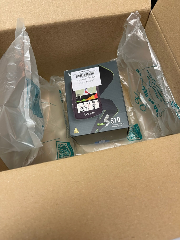Po tistem, ko si se verjetno pol ure boril z embalažo (in skoraj poklical civilno zaščito, da ti pomaga pri tistem drugem sloju kartona), te končno pozdravi Bryton Rider S510 T Bundle. Cena? Na nalepki piše 259,95 €. Za to dobiš toliko tehnologije, da bi verjetno lahko usmerjal polete na Luno, ampak jo boš večino časa uporabljal zato, da boš na Stravi videti hitrejši, kot si v resnici.
